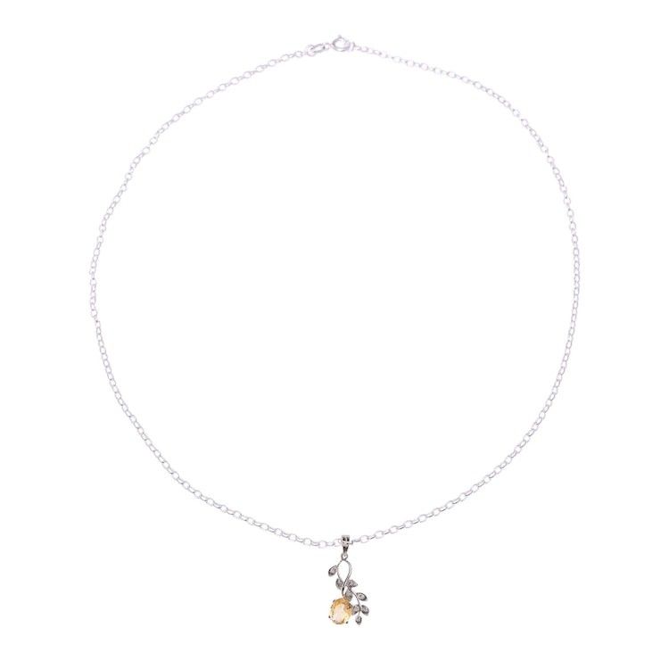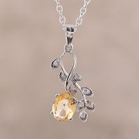 Leafy Rhodium Plated Citrine Pendant Necklace from India 'Glittering Vines' Item ID: 2671792881