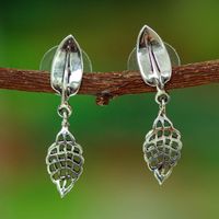 "Immortalize your sylvan style with these sterling silver dangle earrings by Mexico's Martha Vargas. Crafted in a lustrous high-polished finish, the pair boasts tiny leaf-shaped pendants, whose shiny look aims to take you to an ethereal forest."