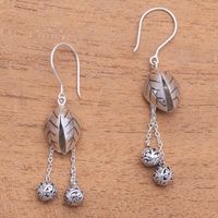 Leafy Sterling Silver Dangle Earrings Crafted in Bali 'Leafy Dew' Item ID: 2671737550