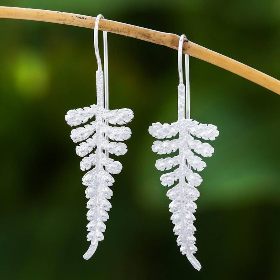 Leafy Sterling Silver Drop Earrings from Thailand 'Descending Fronds' Item ID: 2669929374