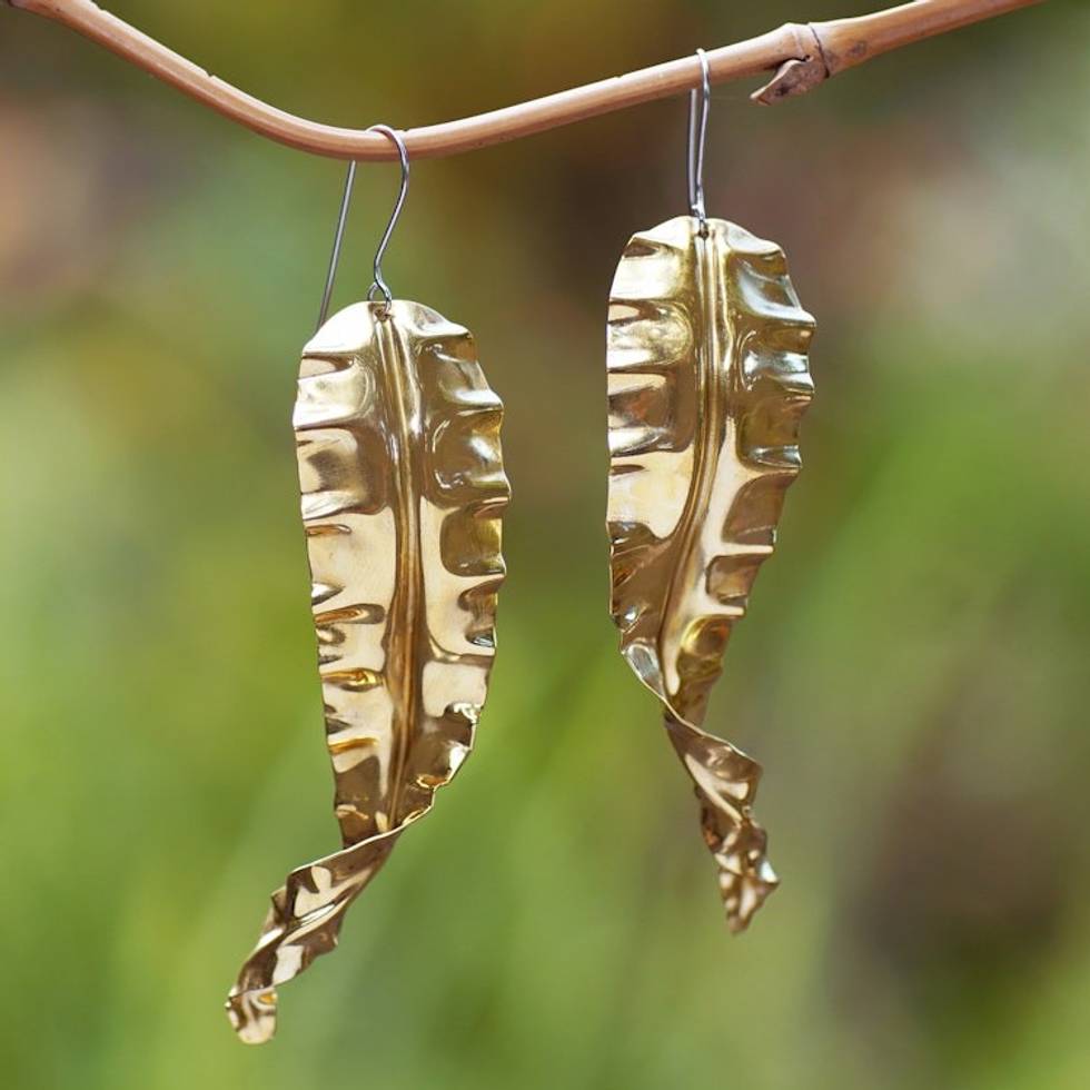 Leafy-Themed Brass Dangle Earrings in a High Polish Finish 'Summer Foliage' Item ID: 2671763027