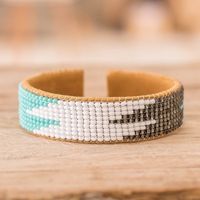 Leather-Accented Blue and Black Glass Beaded Cuff Bracelet 'Electrifying' Item ID: 2671771441
