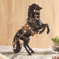 Leather Accented Cedar Wood Rearing Horse Sculpture 'Majestic Elegance' Item ID: 2671691126
