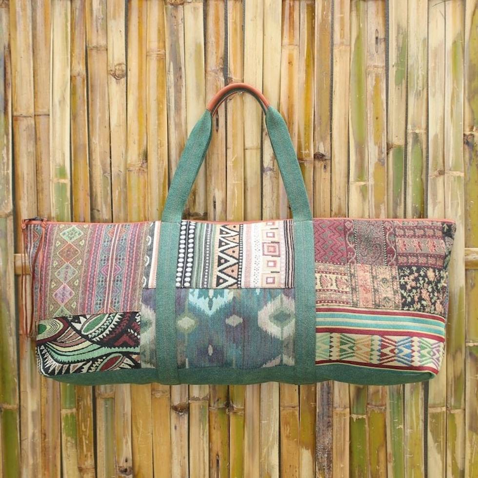 Leather Accented Cotton Blend Yoga Mat Bag 'Nature Fit' Item ID: 2671799728