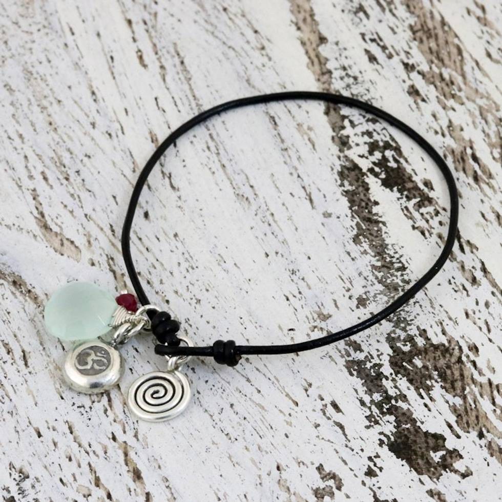 Leather and Chalcedony Bracelet 'Peaceful Ways' Item ID: 2671802879