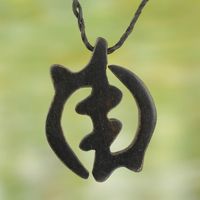 Leather and Ebony Necklace with African Gye Nyame 'God-Fearing Faith' Item ID: 2671816153