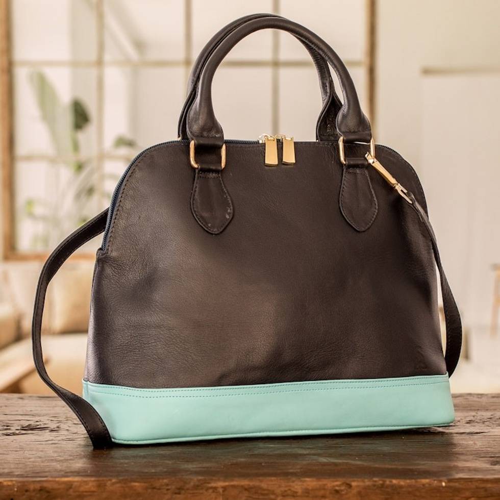 Leather Bowling Sling Bag with Handle and Removable Strap 'Ocean' Item ID: 2671771771