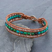 I wear this wrap bracelet often as I love the sporty look. Very comfortable on and I appreciate having the two size loops to choose from so that I can fit this well to my wrist. I do wish that the rhodonite beads were as vividly pink and striking as they are in the photo, but you can't have everything. They other beads are gorgeous. A wonderful piece.