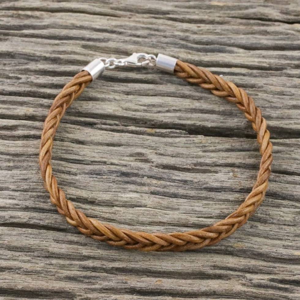 Leather Braided Wristband Bracelet in Copper from Thailand 'Style and Strength in Copper' Item ID: 2671641365