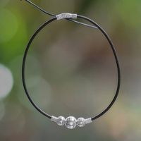 Leather Choker Necklace with Sterling Silver Ball Pendant 'Bold and Beautiful' Item ID: 2676662334