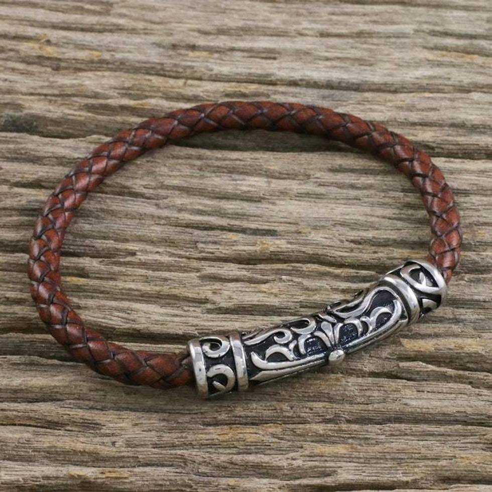 Leather Cross Pendant Bracelet in Brown from Thailand 'Ancient Cross in Brown' Item ID: 2676648365