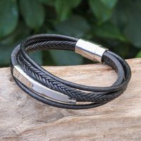 Leather Strand Bracelet in Black from Thailand 'Mighty Strength in Black' Item ID: 2669925913