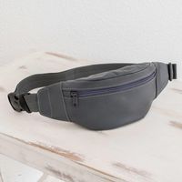 "Keep your hands free for travel, shopping and more with this handy waist bag from Xenia Lopez in Guatemala. The unisex bag is crafted from supple gunmetal grey leather and fully lined in polyester. It features front and back zipper compartments and an adjustable polyester belt."