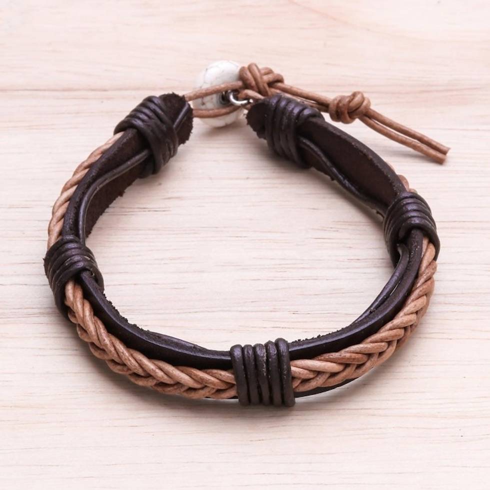 Leather Wristband Bracelet with Braided Accent in Dark Brown 'Perfect Style in Light Brown' Item ID: 2671798446