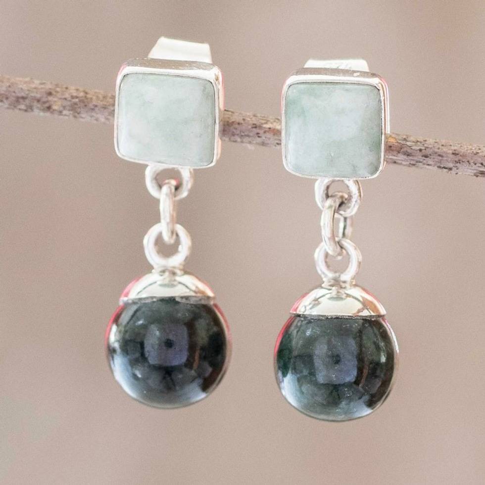 Light and Dark Green Jade Earrings 'Maya Geometry' Item ID: 2669933563