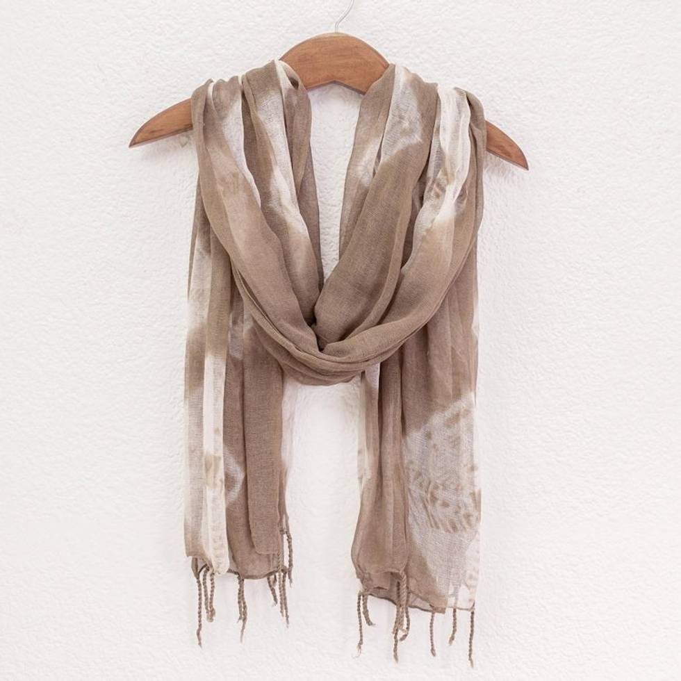 Light Brown and White Cotton Gauze Shawl 'San Pedro Mushroom' Item ID: 2671771593