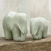 Light Green Celadon Ceramic Figurines of Elephants Pair 'Elephant Bond in Light Green' Item ID: 2671802444