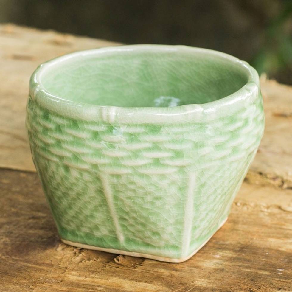 Light Green Celadon Ceramic Vase with Basket Shape Small 'Basket' Item ID: 2671802270