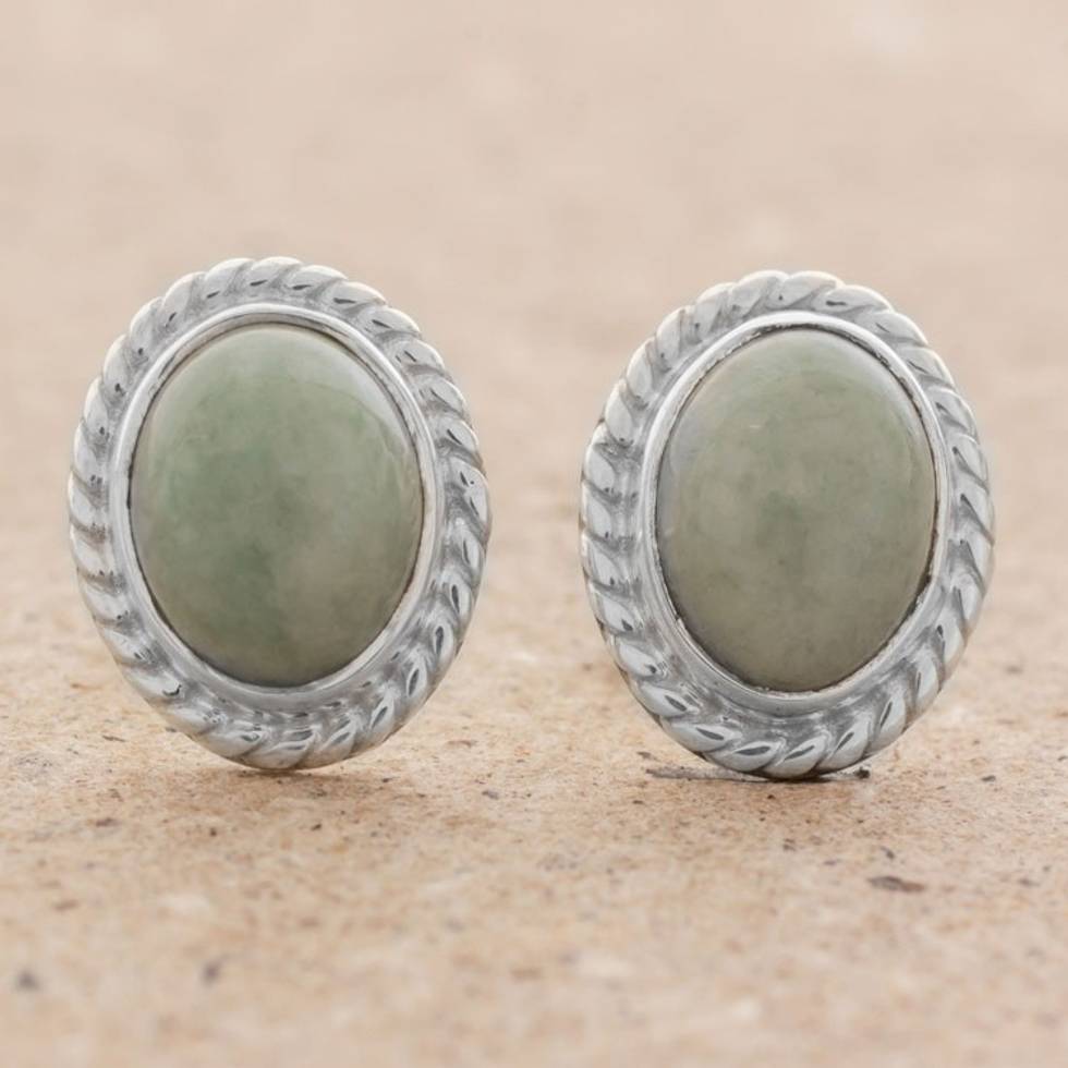 Light Green Jade Oval Stud Earrings from Guatemala 'Oval Lassos' Item ID: 2671780042