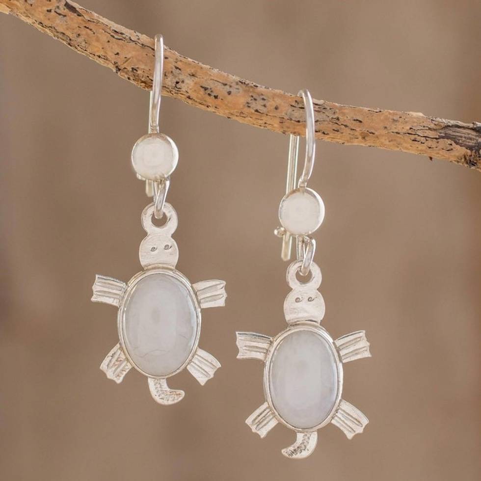 Lilac Jade Dangle Earrings 'Marine Turtles' Item ID: 2671777374