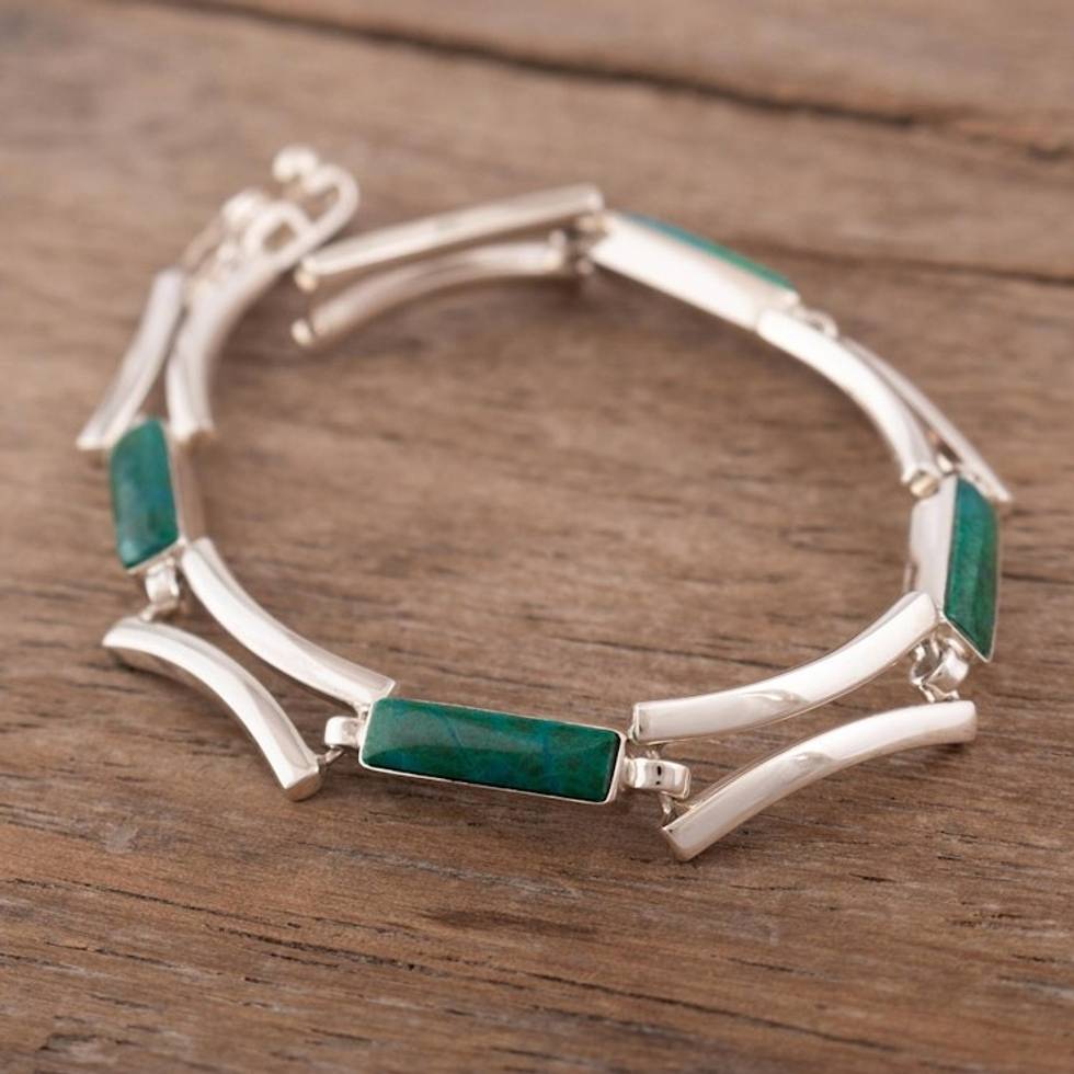 Link Bracelet with Chrysocolla 'Andean Arcs' Item ID: 2671399934