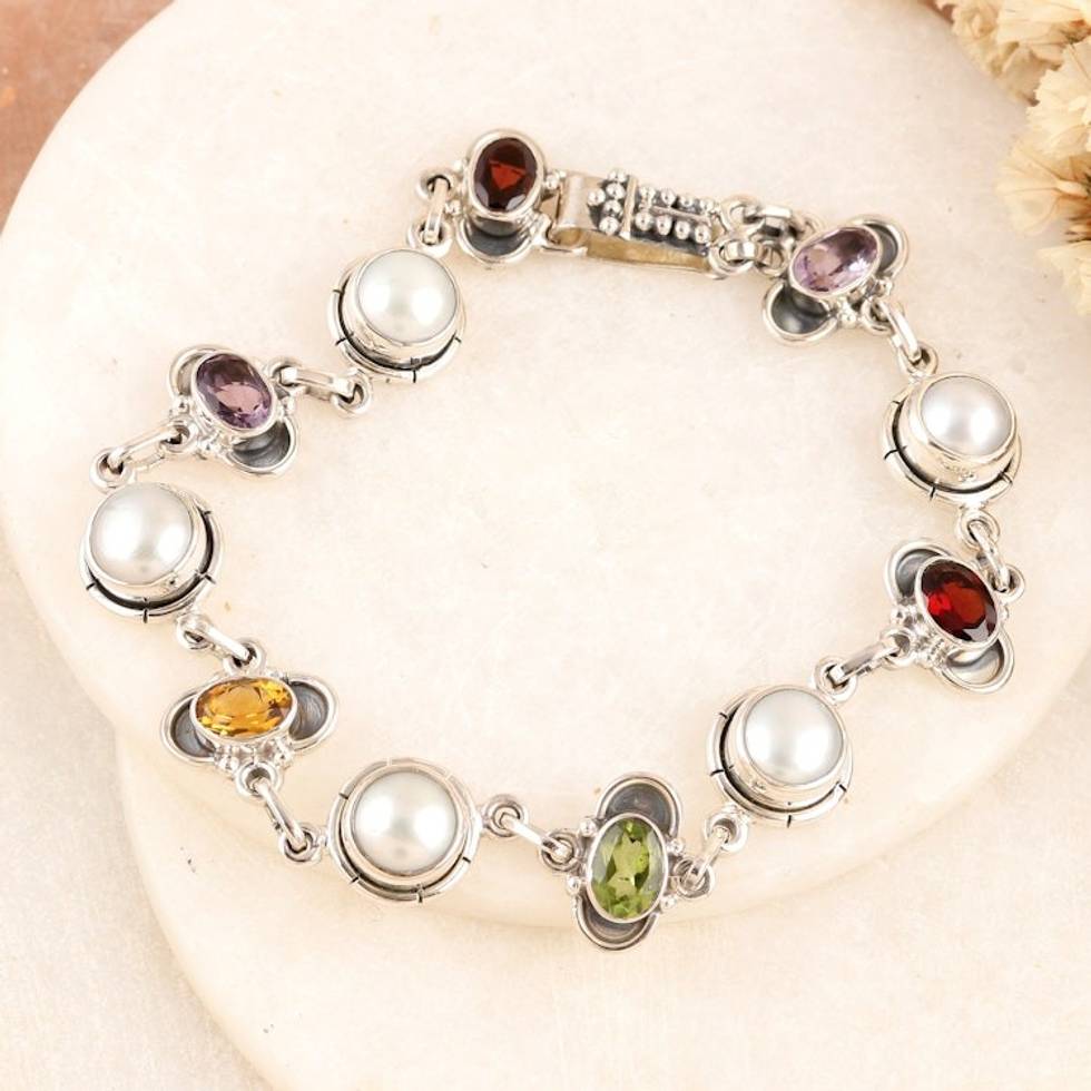 Link Bracelet with Faceted Gemstones and Cultured Pearls 'Earth Wonders' Item ID: 2669925182
