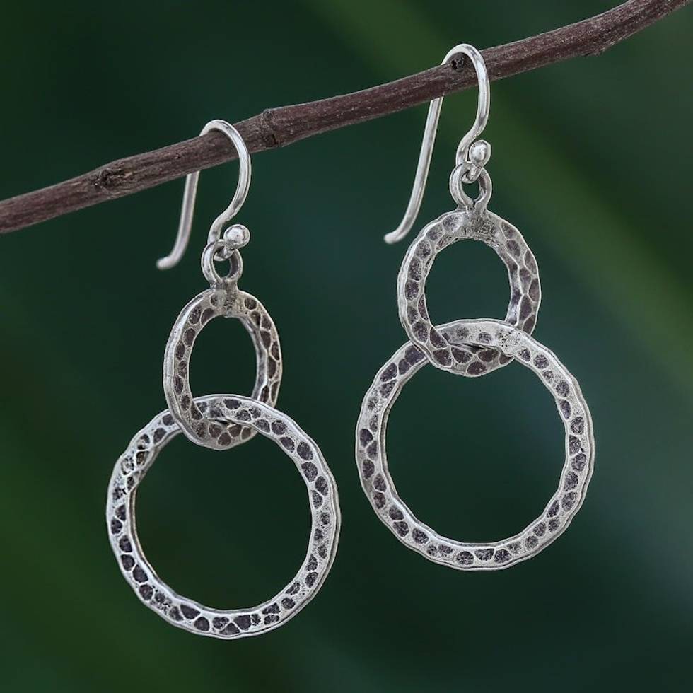 Linked Sterling Silver Dangle Earrings from Thailand 'Smith's Links' Item ID: 2669926696