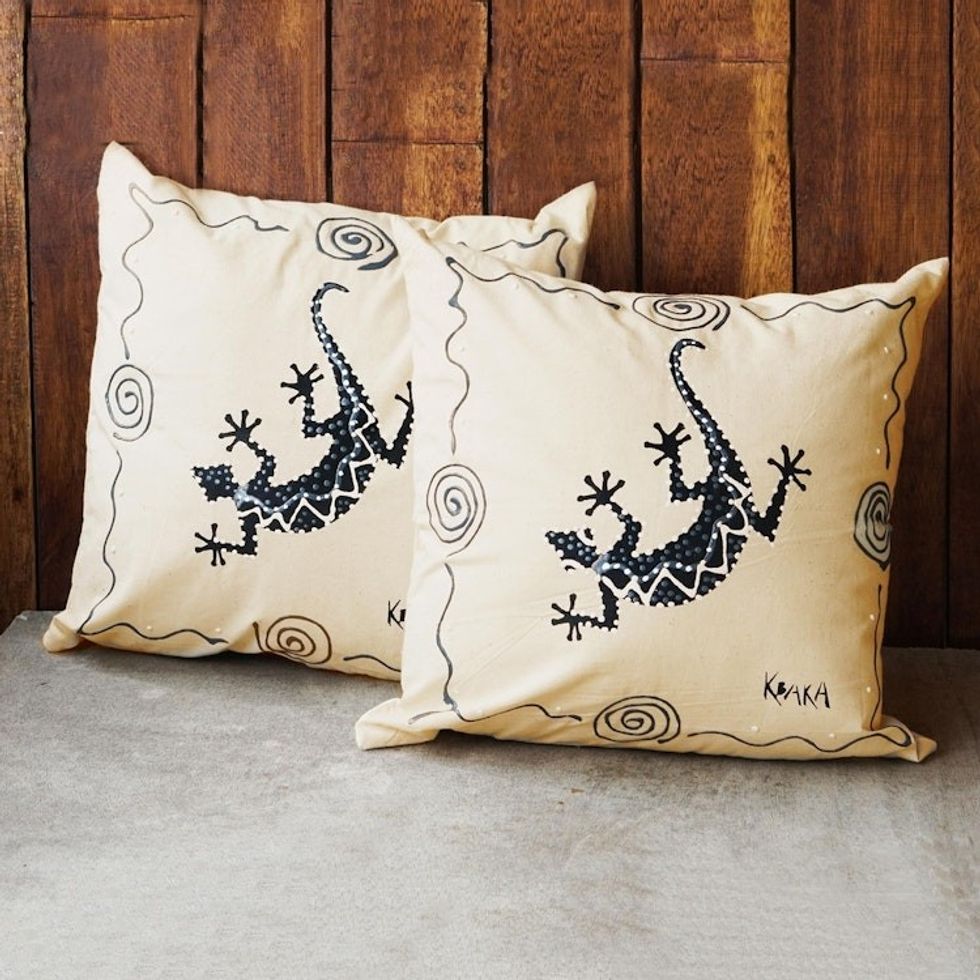Lizard-Themed Cotton Cushion Covers Pair 'Slithering' Item ID: 2671804457
