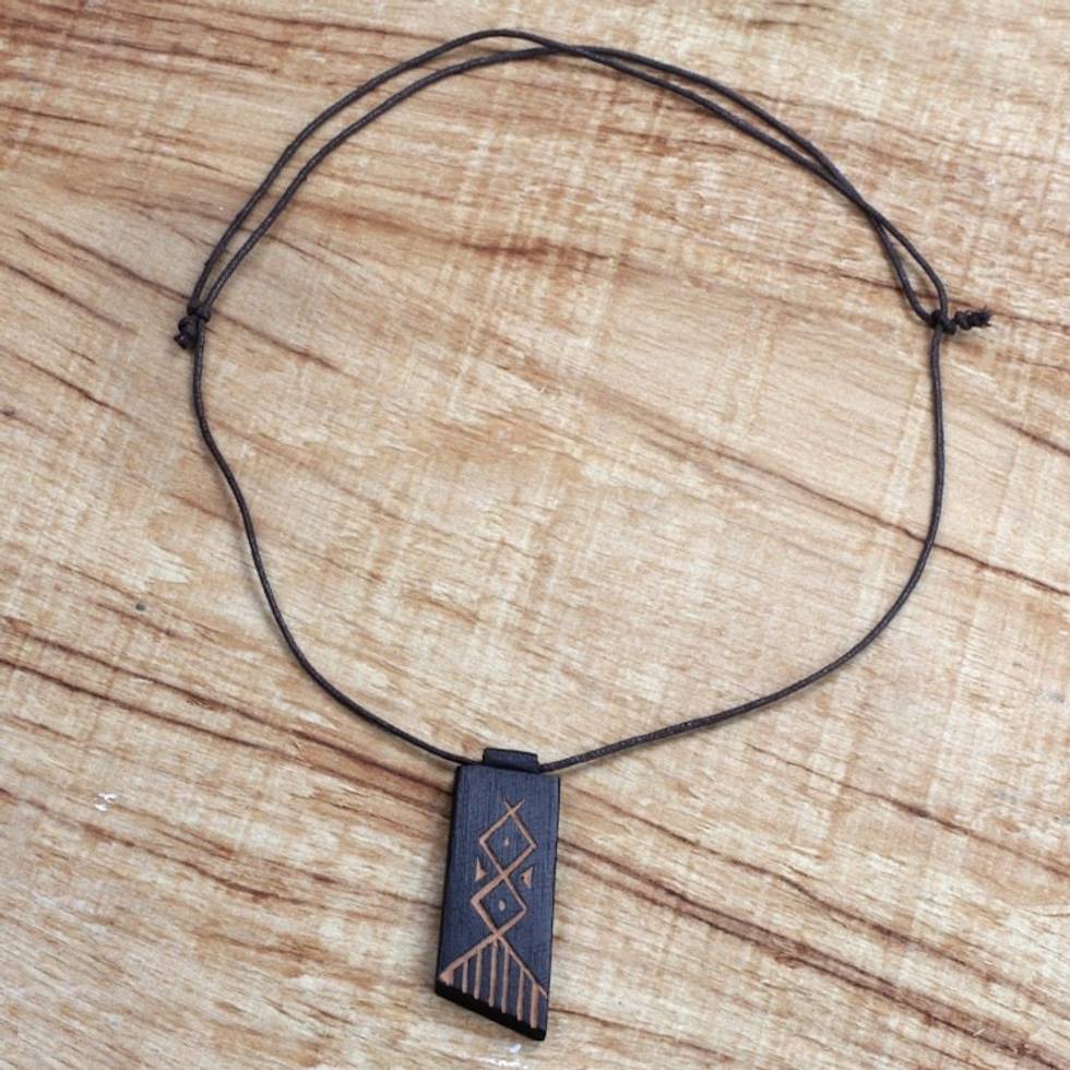 Long Sese Wood Pendant Necklace Hand Crafted in Ghana 'African Comb' Item ID: 2671800936