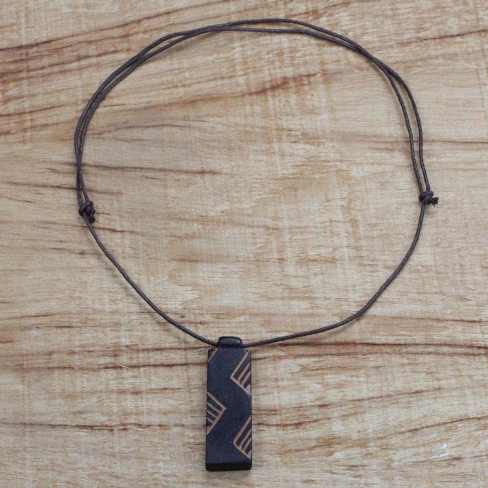 Long Sese Wood Pendant Necklace Hand Crafted in Ghana 'Move in Rhythm' Item ID: 2671803575