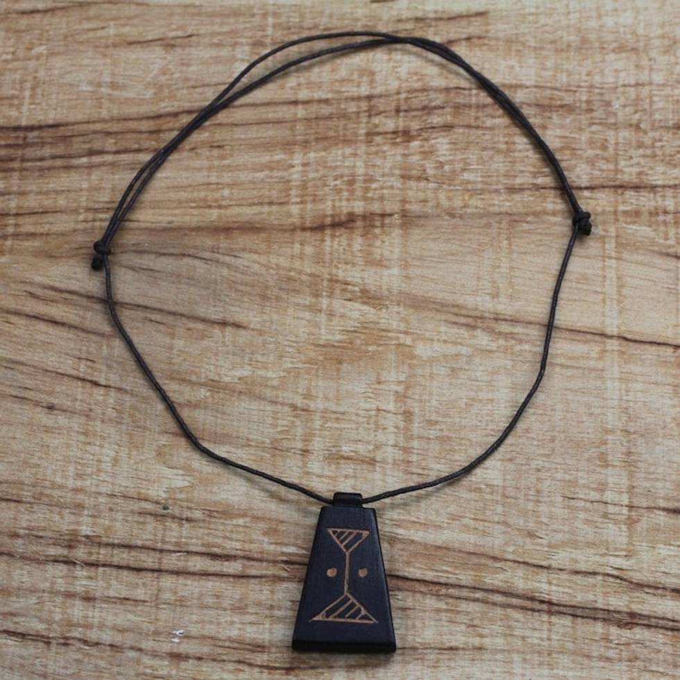 Long Sese Wood Pendant Necklace Hand Crafted in Ghana 'Our Time' Item ID: 2671803738