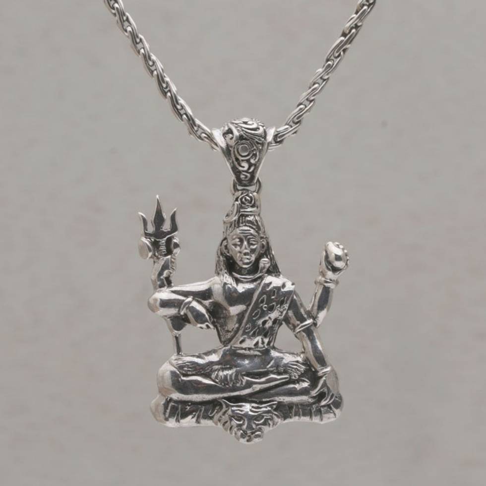 Lord Shiva Pendant Necklace Crafted from Sterling Silver 'Shiva Semedi' Item ID: 2669922818