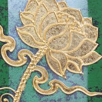"The first work I learned was painting Lanna women’s portraits on wood and canvas. I tried to use different materials besides regular paint, such as resin, gold foil, etc. My inspiration came from where I grew up, charming Thai motifs, Buddhism, and Lanna history and beliefs.