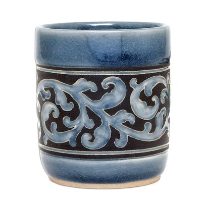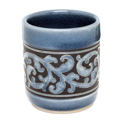 "The celadon glaze is thick and strong, yet has many intricate weblike cracks in its surface for an antique feel.