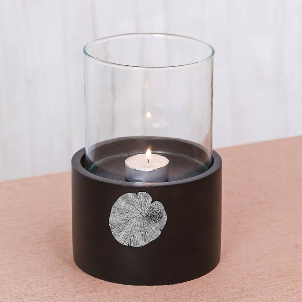 Lotus Motif Wood and Pewter Tealight Holder 'Elegant Lotus' Item ID: 2671798404