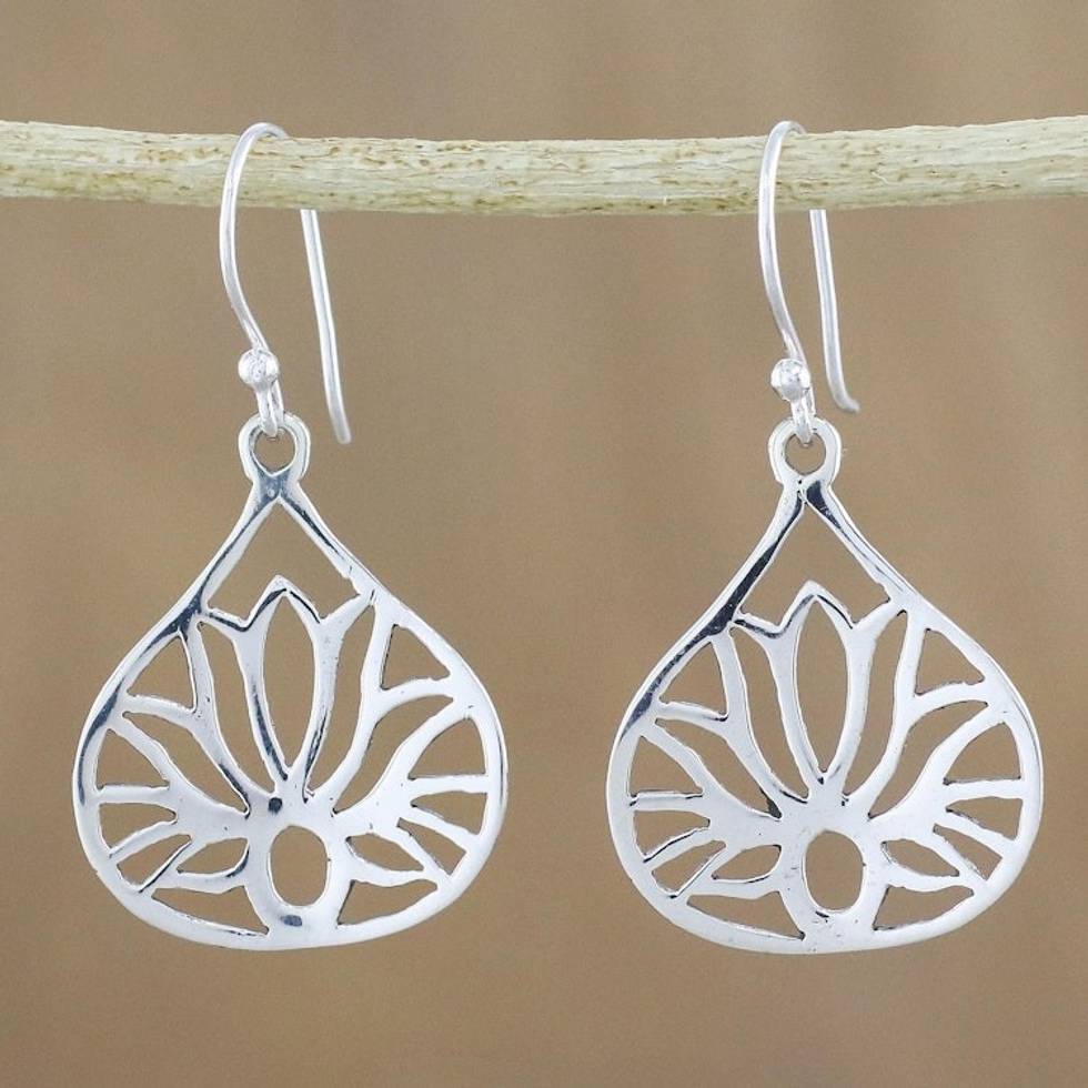 Lotus-Shaped Sterling Silver Dangle Earrings from Thailand 'Shimmering Lotus' Item ID: 2669926039