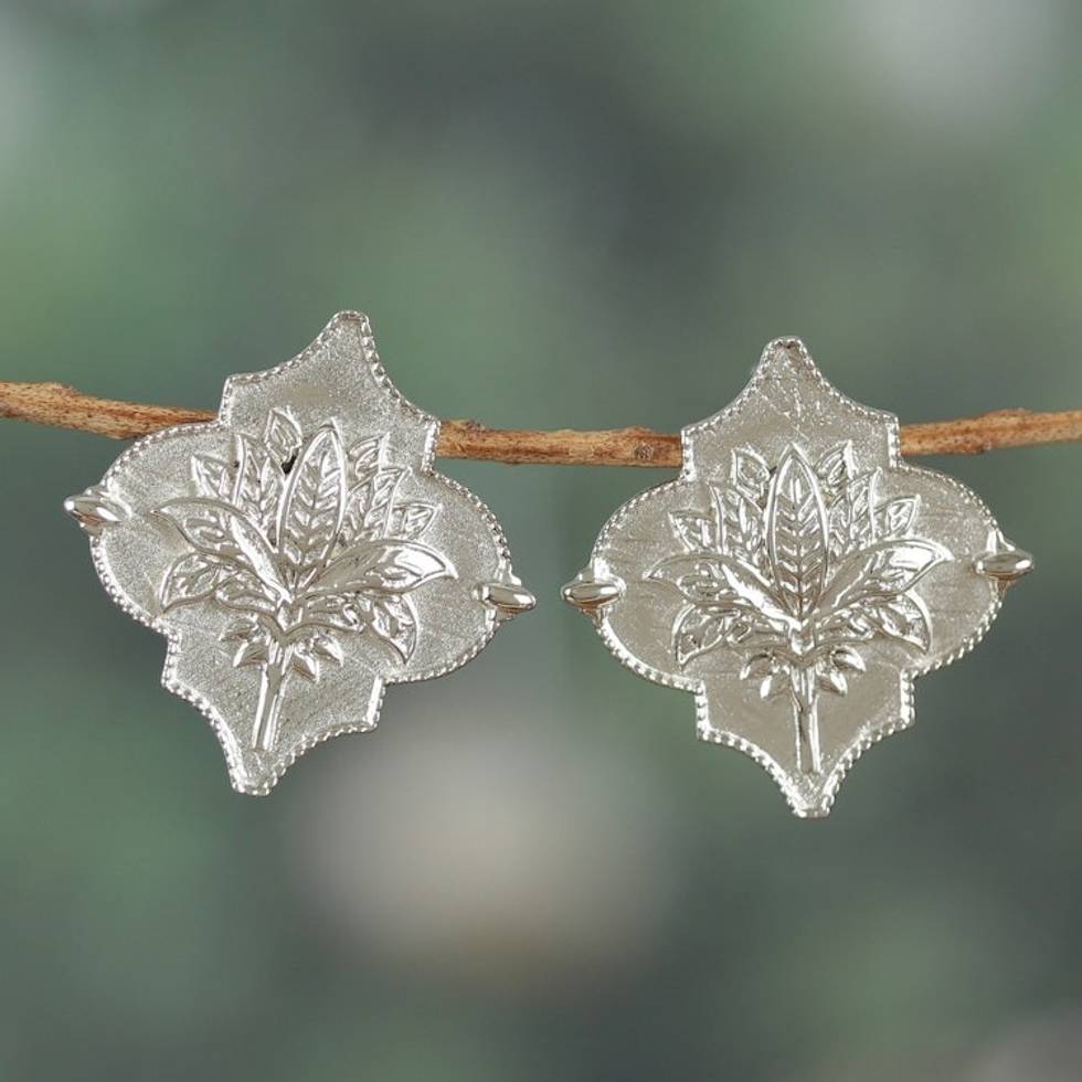Lotus-Themed Classic Polished Sterling Silver Drop Earrings 'Lotus Reign' Item ID: 2671783204