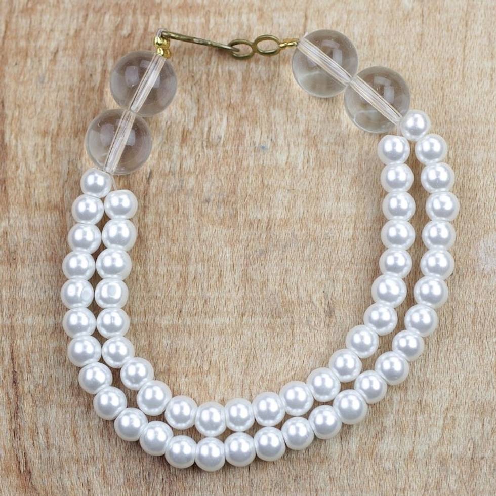 Love Glow White Recycled Glass Beaded Bracelet from Ghana 'Love Glow' Item ID: 2671803555