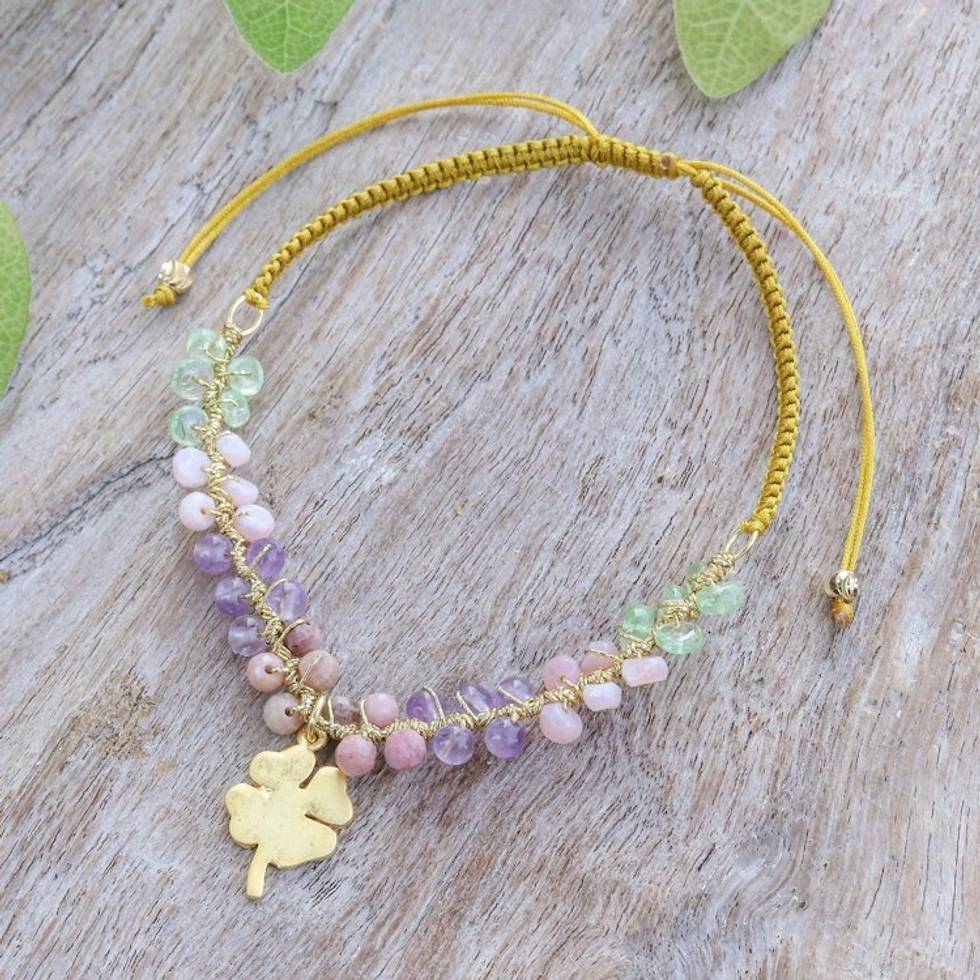 Lucky Clover Gold-Accented Multi-Gemstone Pendant Bracelet 'Four-Leaf Fortune' Item ID: 2671796602