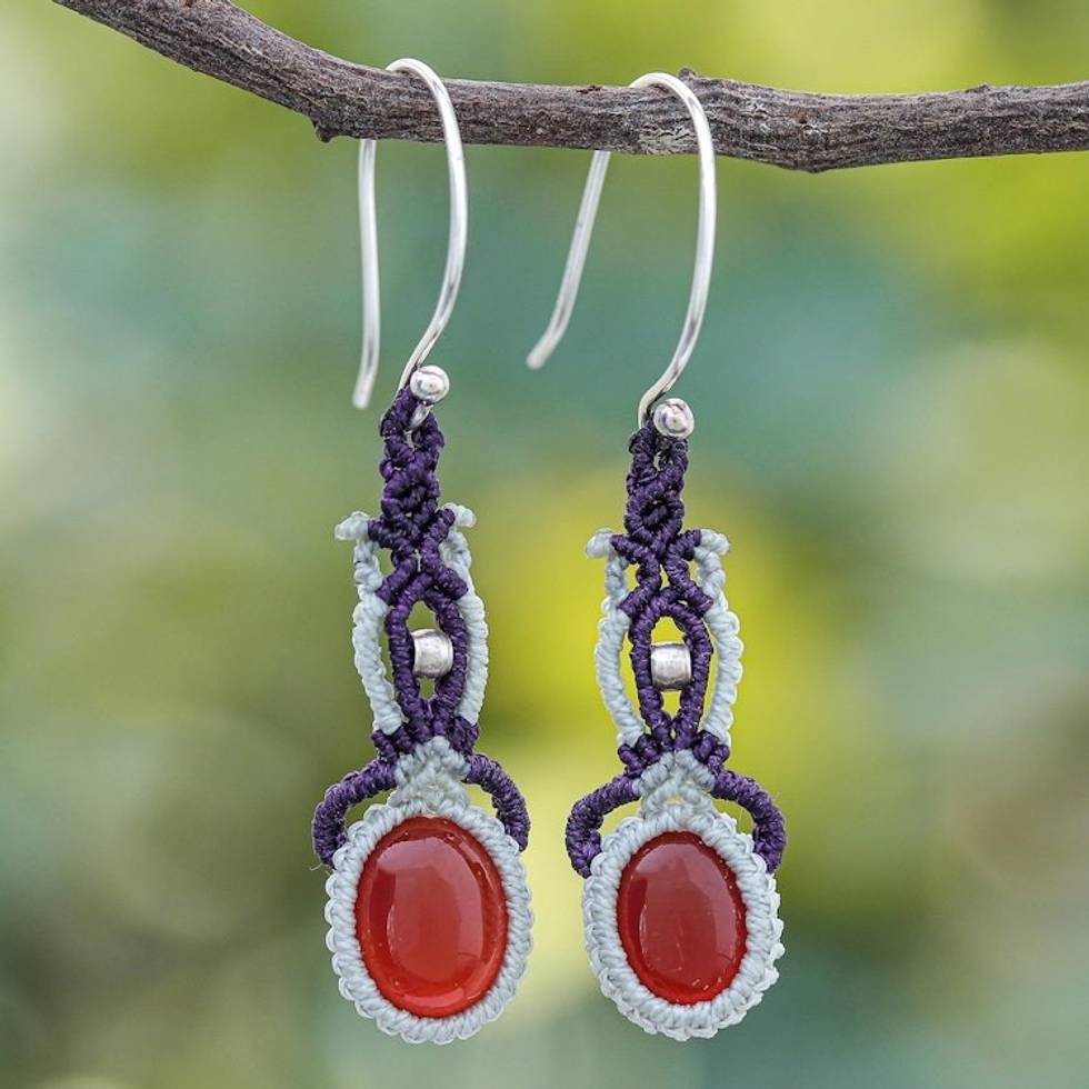 Macrame Chalcedony and Sterling Silver Dangle Earrings 'Fine Art' Item ID: 2671800351