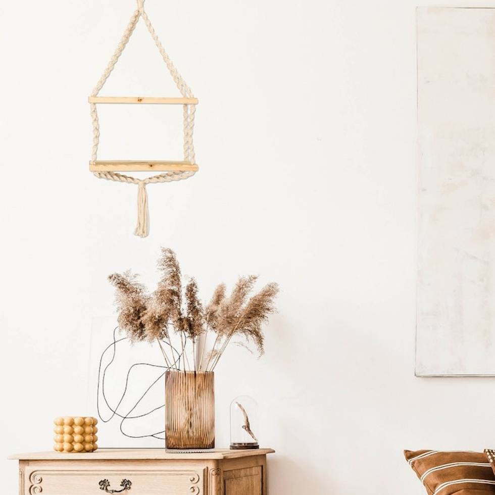 Macrame Cotton and Wood Hanging Shelf in Beige and Ivory 'Boho Elegance' Item ID: 2671769193