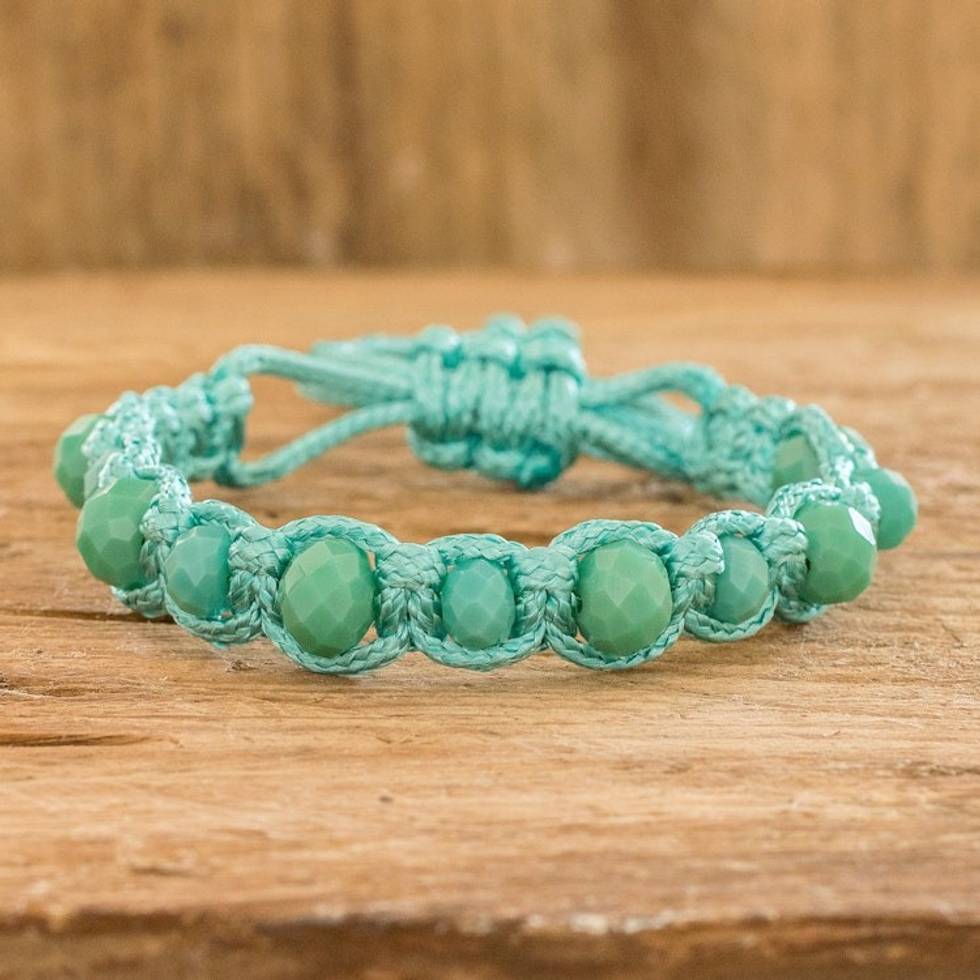 Macrame Hand-Knotted Bracelet with Crystal Beads 'Boho Sea Crystals' Item ID: 2671772189