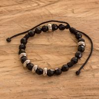 Macrame Wristband Bracelet with Crystal Beads in Black 'Shimmering Crystals' Item ID: 2671772315