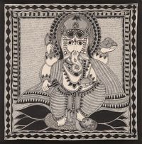 Madhubani Ganesha Painting on Handmade Paper 'Auspicious Ganesha' Item ID: 2671787953