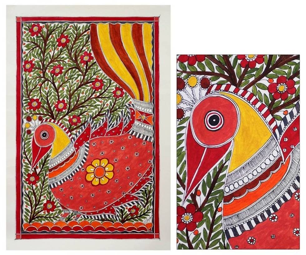 Madhubani painting 'Dancing Bird' Item ID: 2671794285