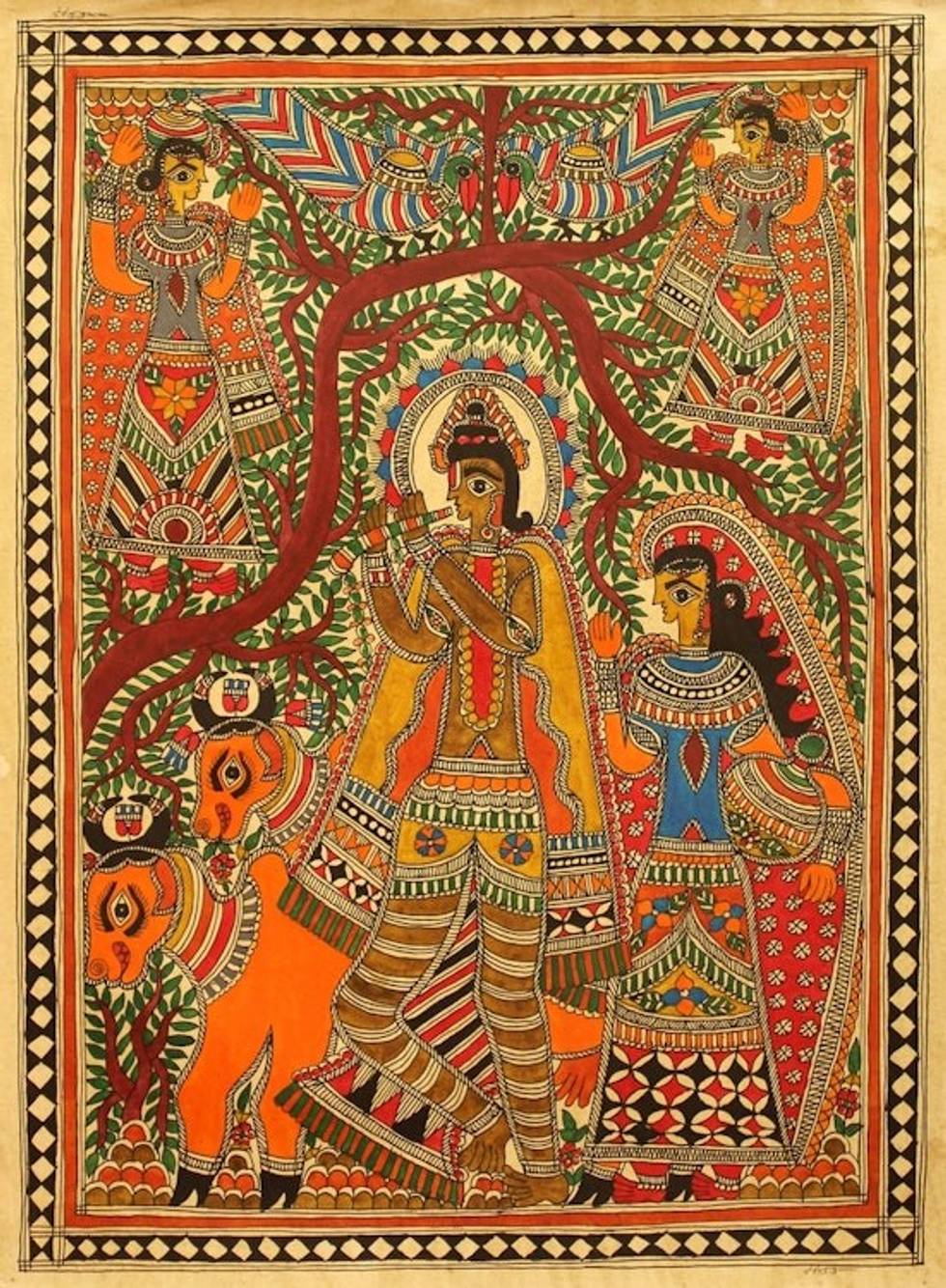 Madhubani painting 'Krishna with His Cattle' Item ID: 2671794657