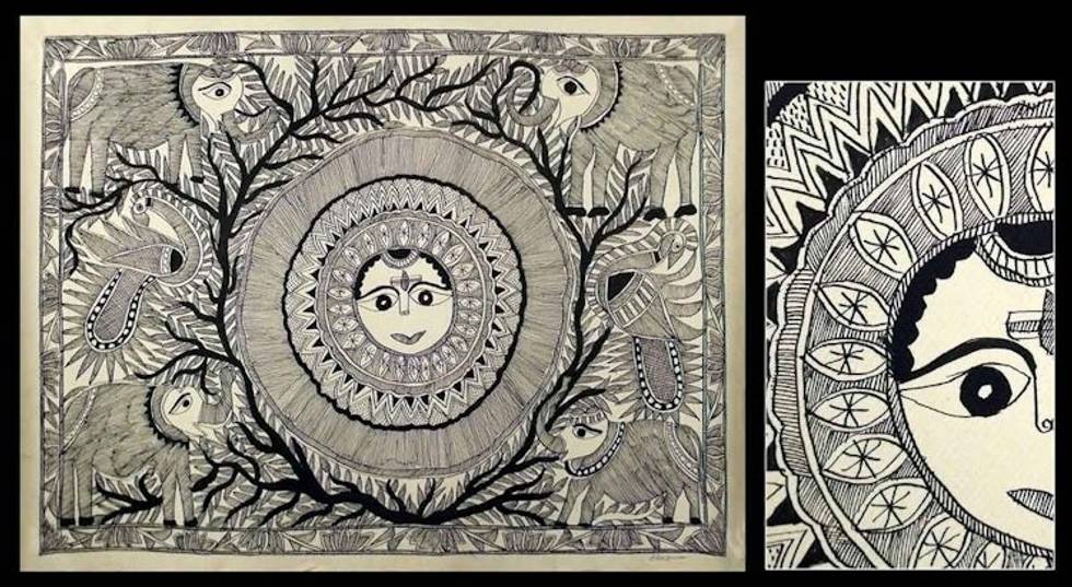 Madhubani painting 'Mighty Sun' Item ID: 2671794501