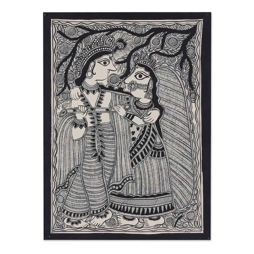 Madhubani Painting of Hindu Gods Krishna and Radha 'Radha and Krishna Saga' Item ID: 2671781989