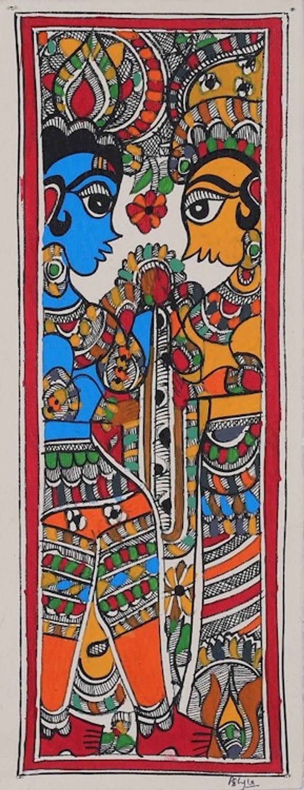 Madhubani Painting of Hindu Gods Ram Sita on Wedding Day 'Ram Sita Vivah Wedding' Item ID: 2671781694