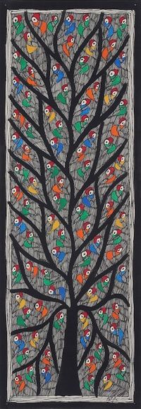 Madhubani Painting of Tree of Life with Colorful Birds 'Tree of Life with Birds II' Item ID: 2671781542